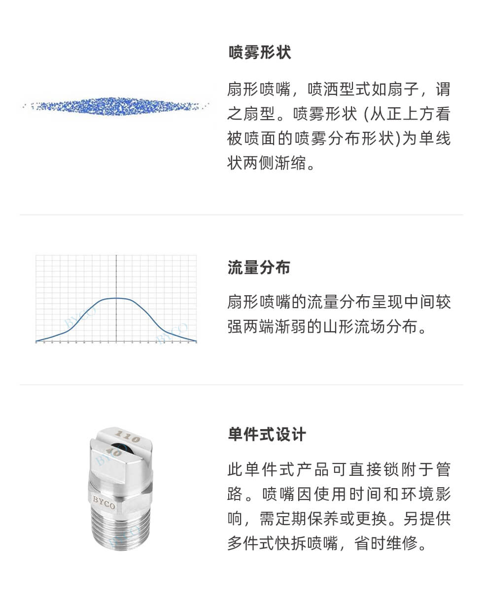 扇形噴霧,噴射區域成線形。